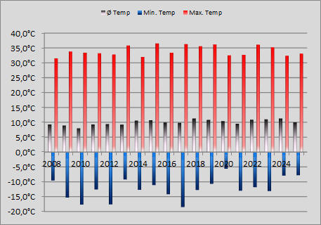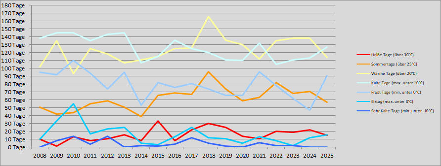 | Kalte & Heiße Tage von 2008 - 2025 | ||||||||||||||||||