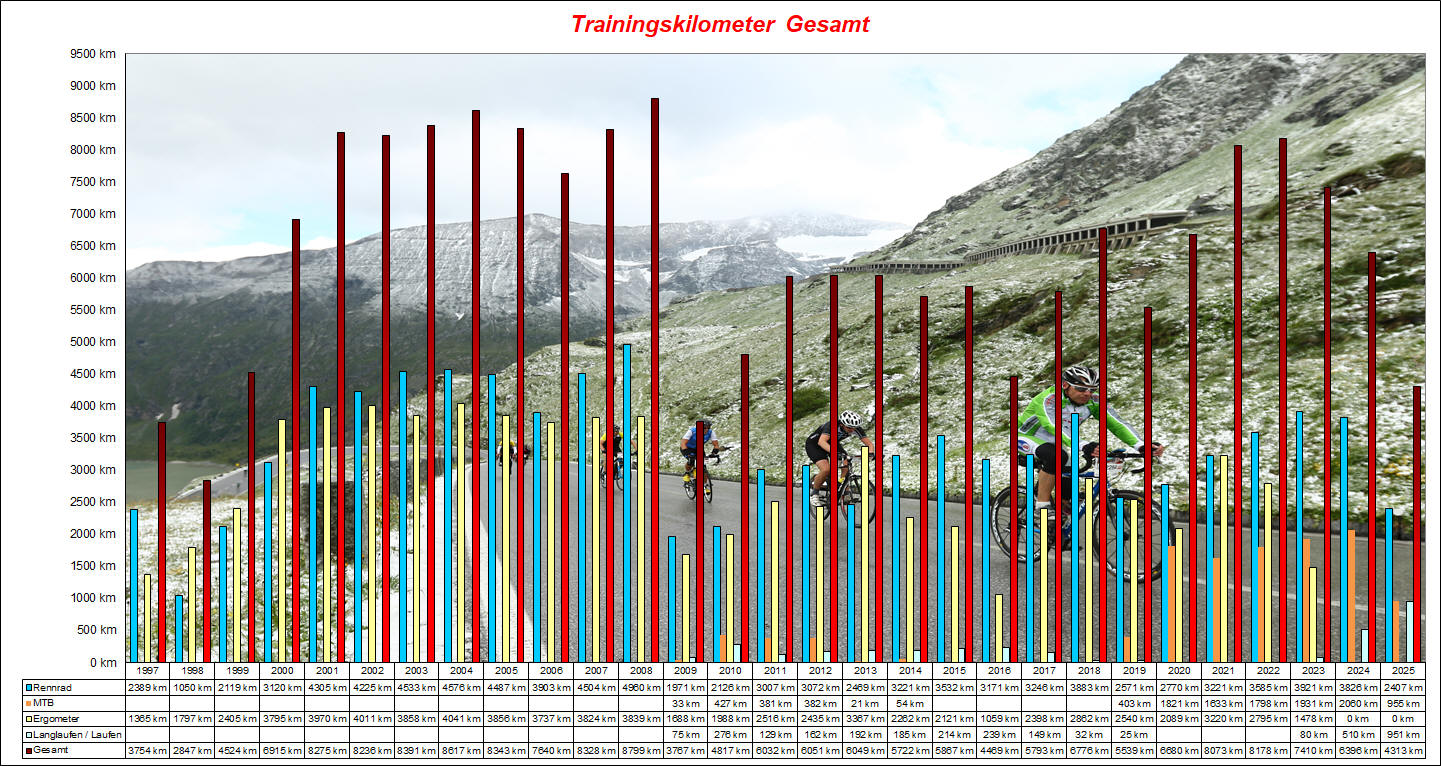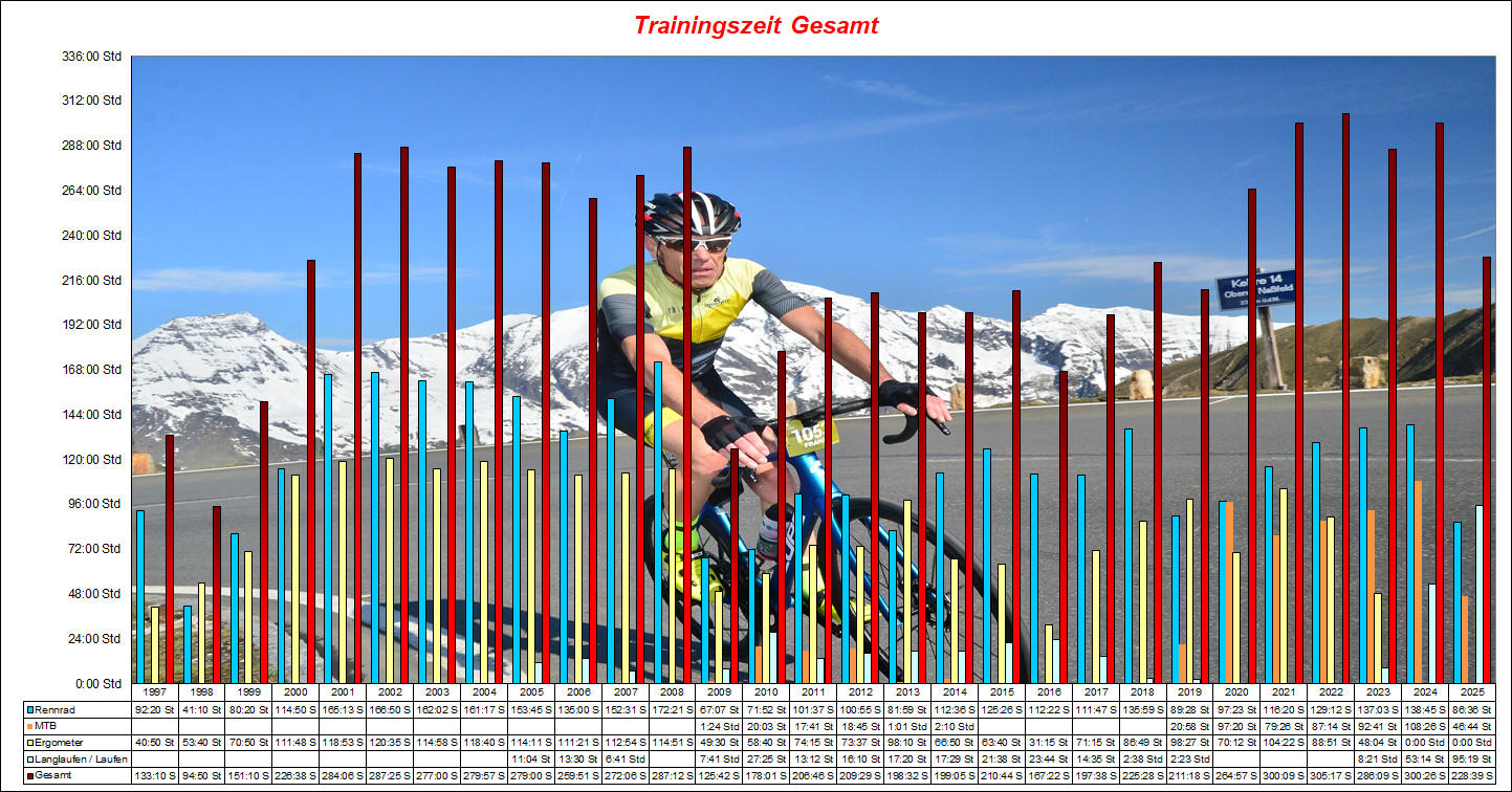 | 2008 | 114:51 Std | 3839 km | 172:21 Std | 4960 km | 56145hm | 287:12 Std | 8799 km | 56145hm | ||||||